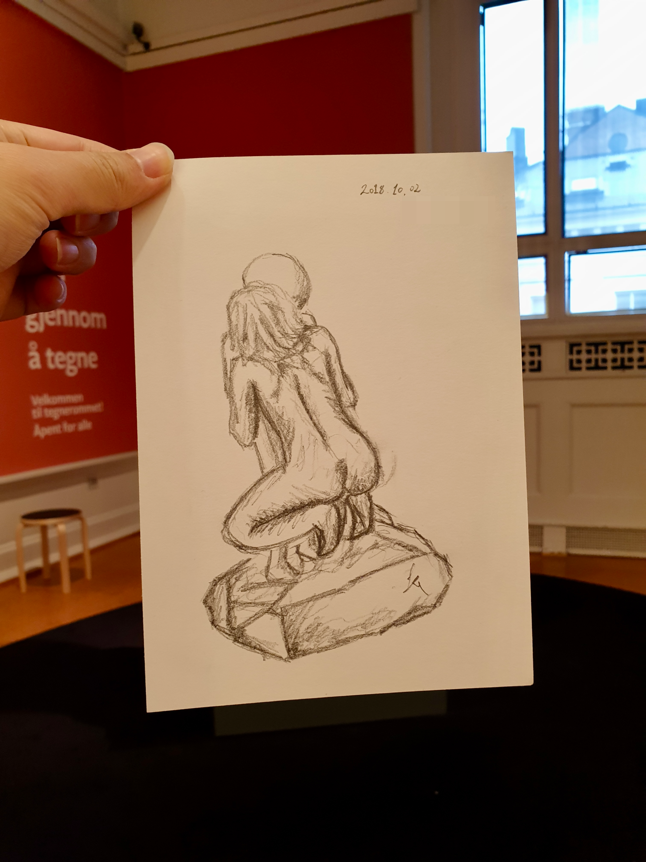 어떤 동상이 전시 되어 있고 뭔가 그릴수 있는 종이가 있던데 동상을 따라그려봤다.