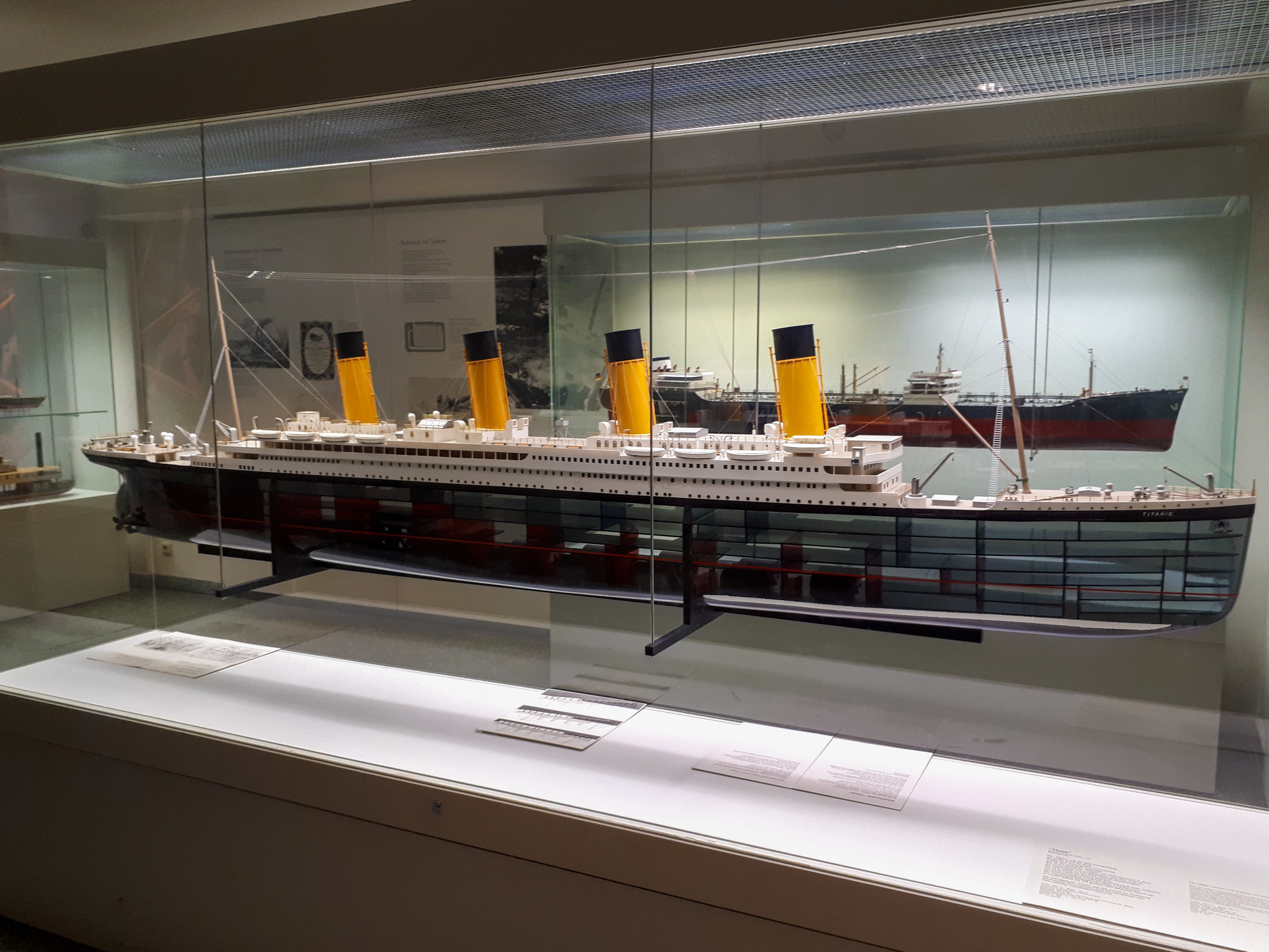 항해, 배 코너에 기념적인 증기선 타이타닉 모형이 있다.