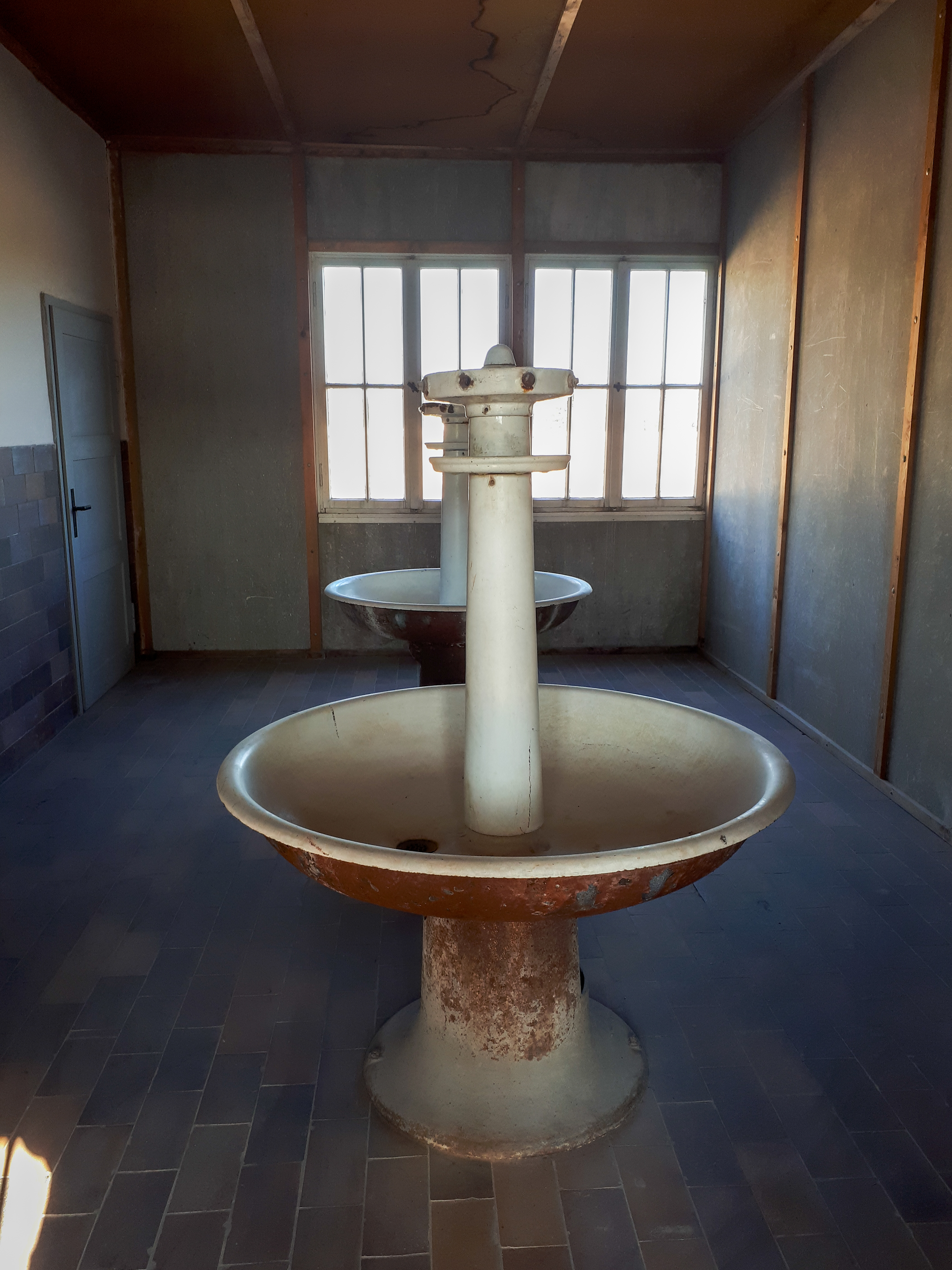 내부에는 수용소에서 사용하던 침대, 화장실, 세면대 등이 그대로 남아 있었다.
